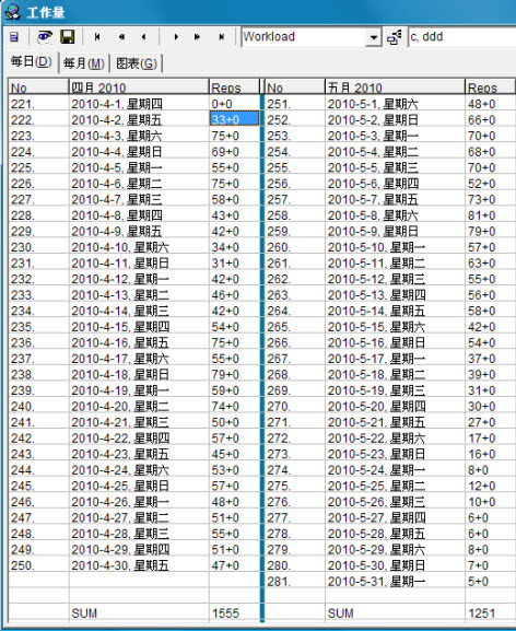 工作量:这是个容易引起误解的词,它是负荷值乘以平均时间的乘积。事实上,实际舍得平均每天所花的可不仅仅是2分52秒。这个值对我们来说意义不是很大。